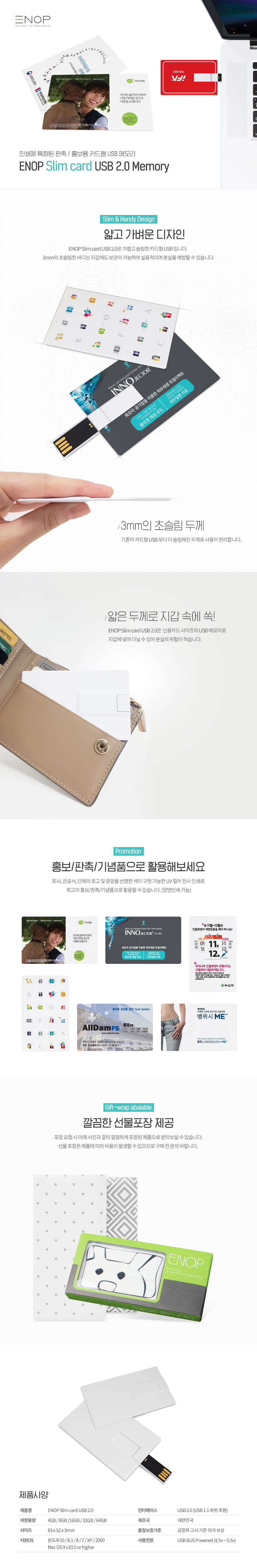 ENOP ½½¸² Ä«µå USB 2.0 ¸Þ¸ð¸®16GB