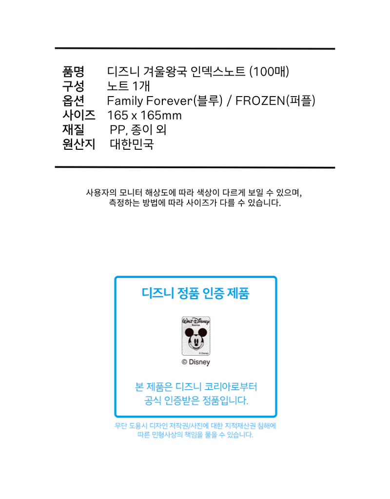 Á¦Ç°ÀçÁú PP, Á¾ÀÌ ¿Ü »ö»ó Family Forever(ºí·ç) / Frozen(ÆÛÇÃ)
